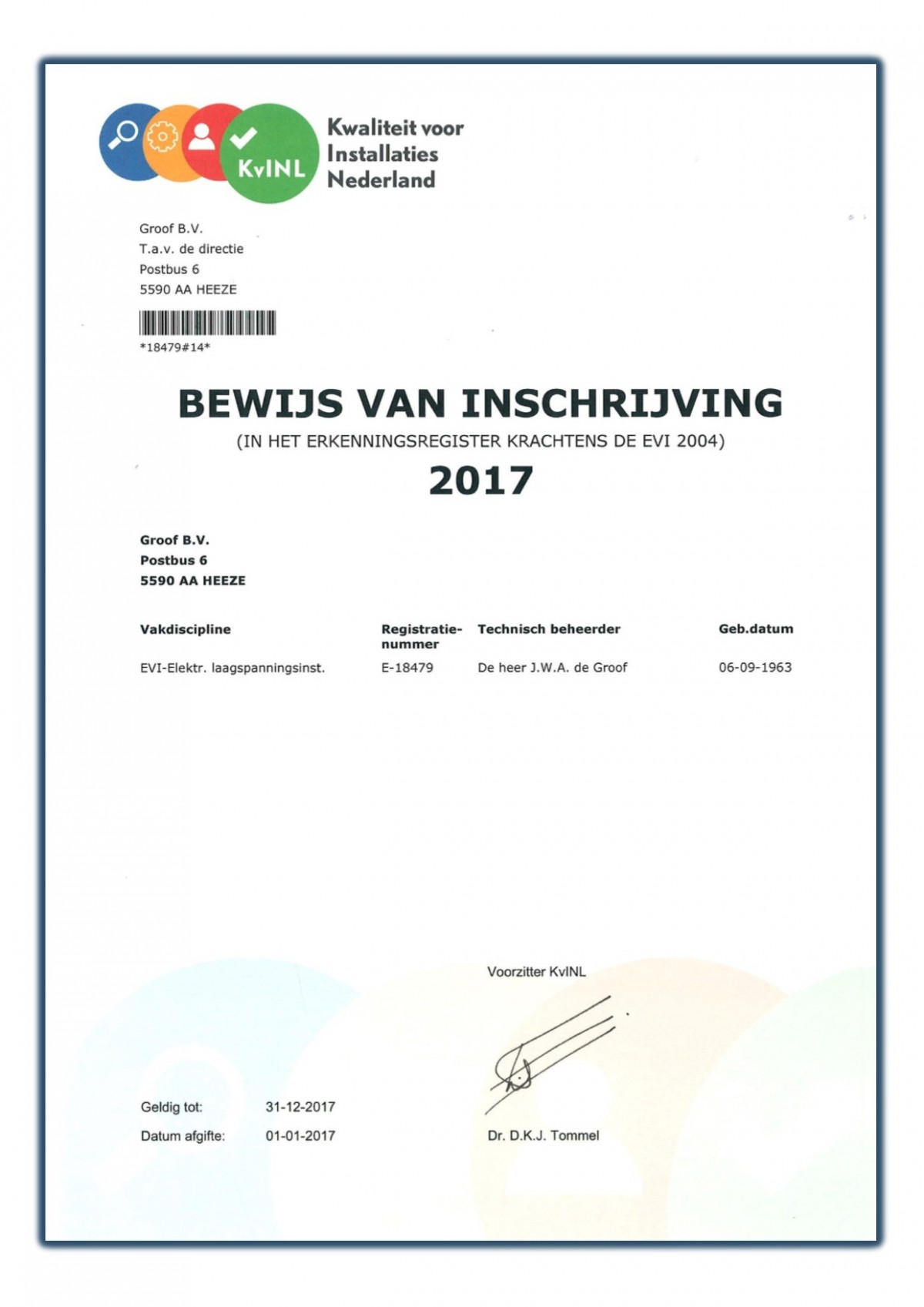 Als erkend elektrotechnisch installateur zijn wij natuurlijk bij het SEI , KvINL en onze branche-organisatie Uneto-VNI aangesloten.