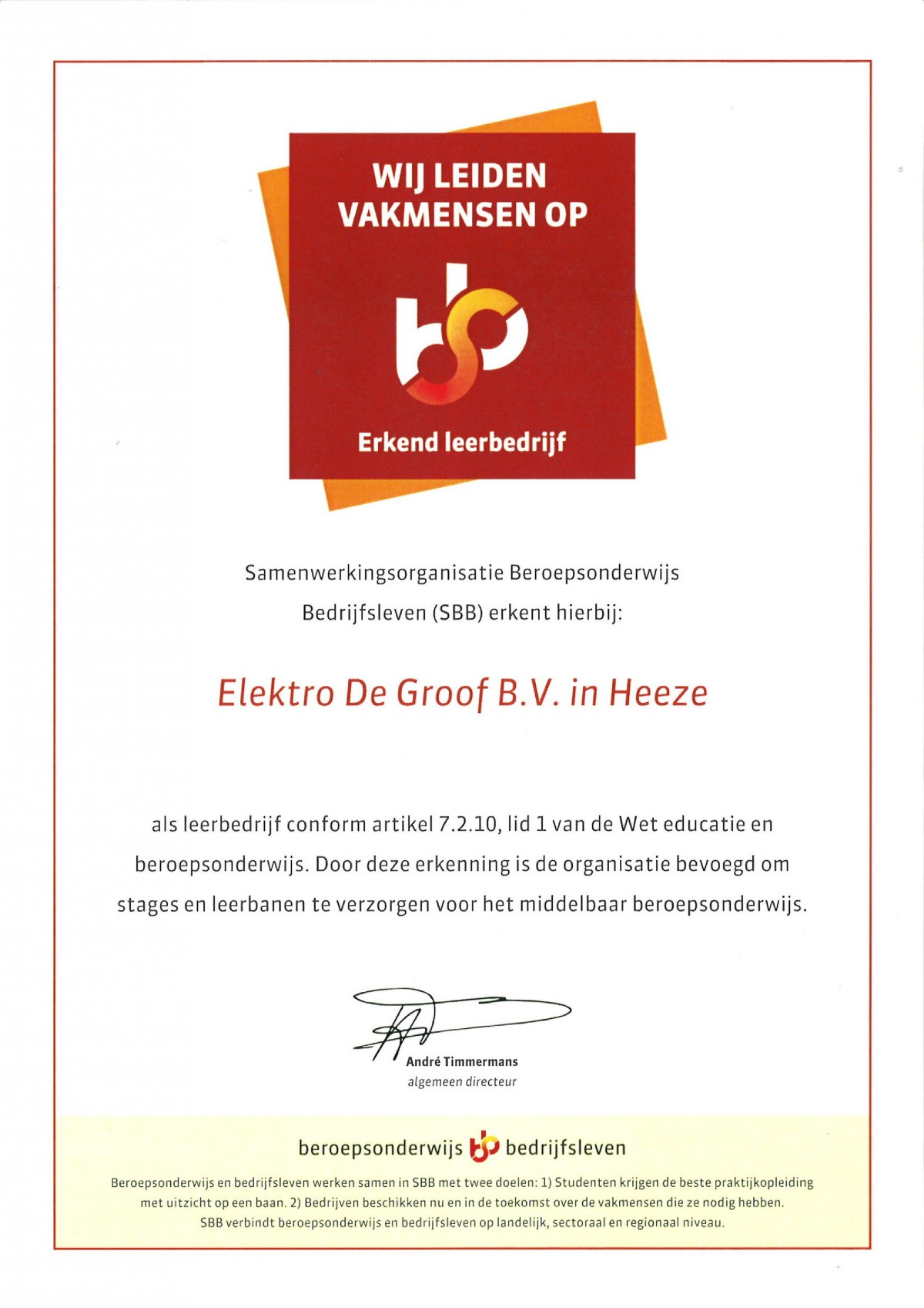 Elektro de Groof B.V. uit Heeze is een elektrotechnisch totaal-installatiebedrijf dat met haar ruim 30-jarig bestaan heeft bewezen kwalitatief onderscheidend te zijn. Onze organisatie wordt steeds klantgericht en flexibel ingezet voor een optimaal resultaat bij onze opdrachtgevers. Het persoonlijk contact met onze klanten vinden wij erg belangrijk. Deze korte communicatielijnen zorgen voor een optimale samenwerking.
